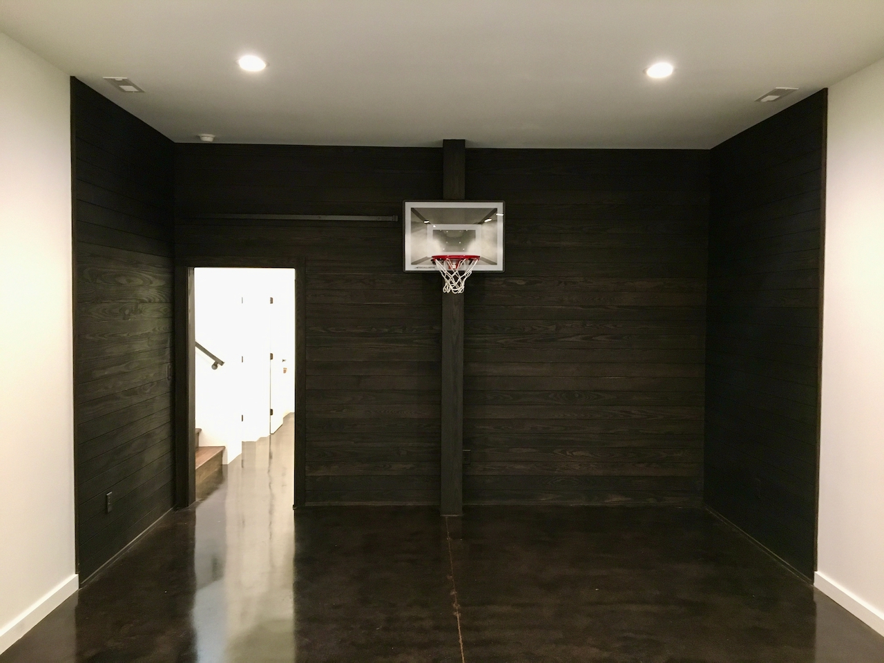 Addition to lovely cedar shake sided home, constructed around an old cabin. Included full basement with partial basketball court, stone faced fireplace in main living area, gallery spaces, seamless connection to existing structure, as well as reclaimed wood and zinc accents.